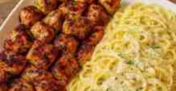 This indulgent pasta dish combines juicy pan-seared chicken with a rich, homemade garlic butter Alfredo sauce tossed with linguine. Perfect…