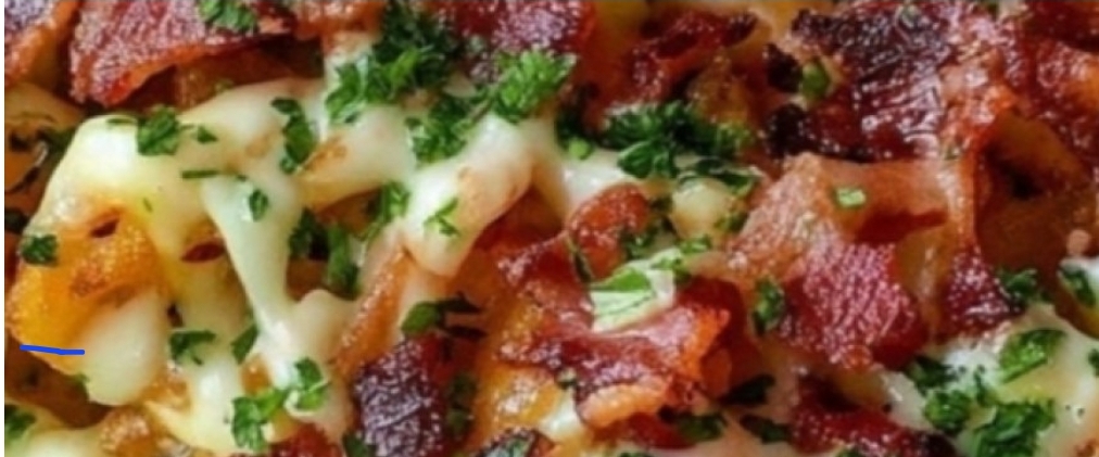 Assemble: Place fries on a serving dish. Pour cheese sauce over the fries. Sprinkle with crumbled bacon and fresh parsley.