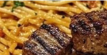 Sizzling Garlic Butter Steak Bites with Creamy Spaghetti